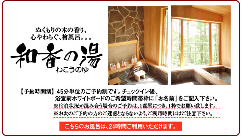 ※朝のご利用につきましては、どちらのお風呂もご予約はございません。 未使用時はいつでも貸切利用できます。 (ただし、10時〜15時の間は、清掃・消毒時間となりますので、ご利用いただけません。)