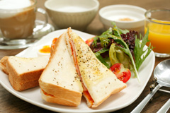 オレンジジュースにヨーグルト、そして温かいスープ。 チーズのとろけるトーストサンドなどのワンプレート。 心地よい音楽を聴きながら、お出かけ前にゆったりとお寛ぎください。 |